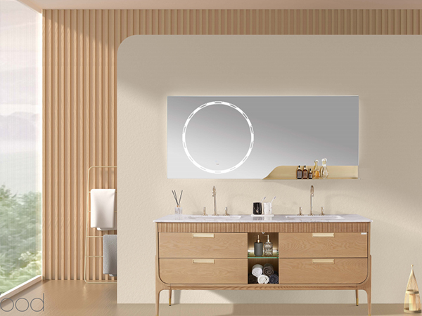 - + 正面磨砂透光,LED 燈 + 除霧 + 觸摸開關 + 三色無極調光